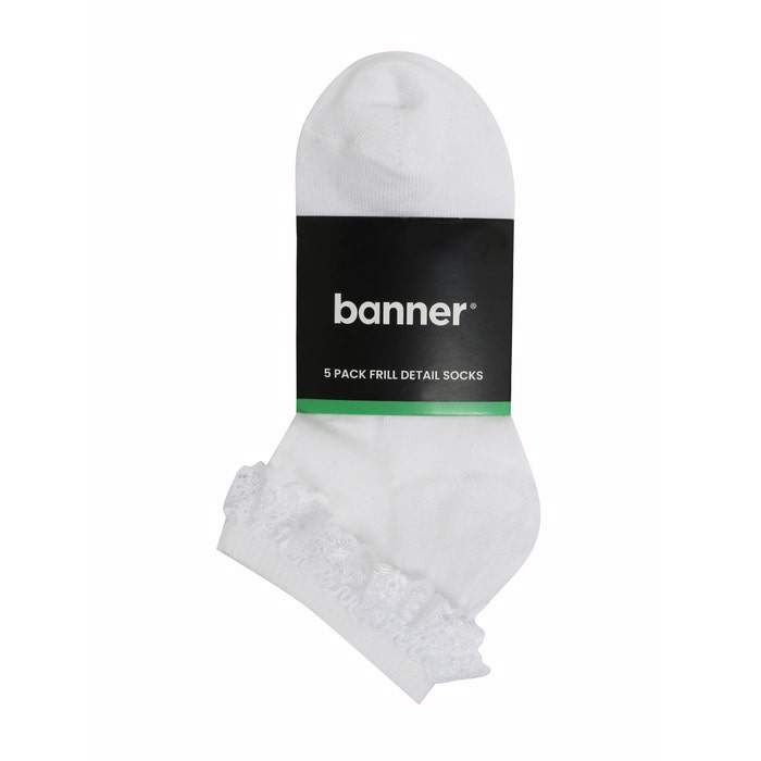 Banner 5 Pk Frill Trim Sock-WH-SH4-7