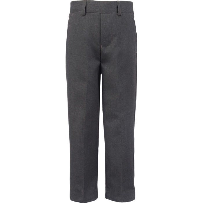 These Junior Boys Relaxed Fit Trousers in grey feature a half elasticated back, a mock fly up to and including age 5-6 and an EcoEliteâ„¢ fabric finish.