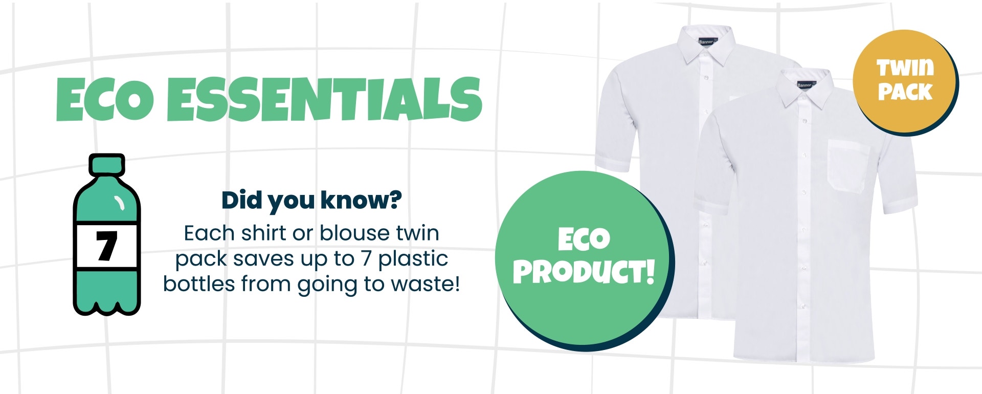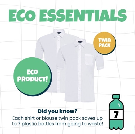 Browse our Eco range—sustainable school uniforms that are high quality, durable, and affordable. Look for the Eco icon when shopping. Did you know? Banner shirts and blouses come in packaging made from 100% recycled materials, which can be recycled again after use. It’s an easy way to support the planet while getting school-ready.