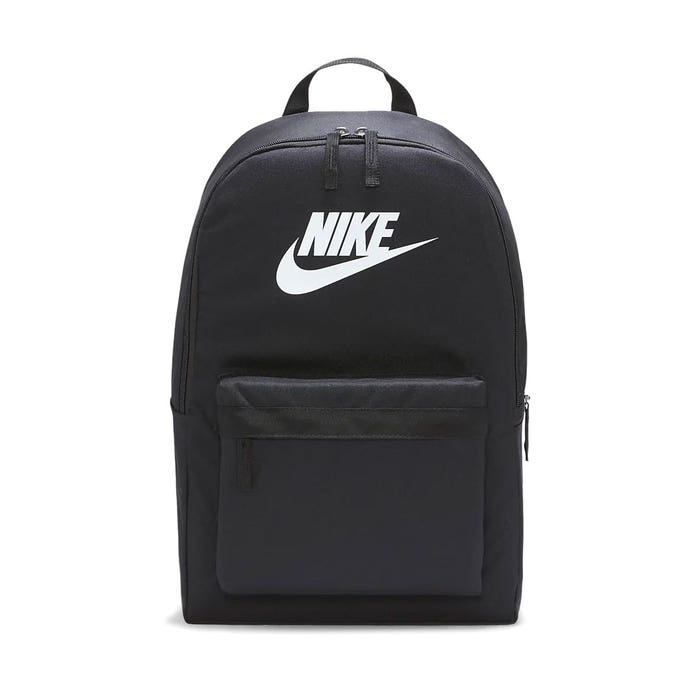 Introducing the Nike Heritage 2.0 Backpack in Black . Simple and functional, this backpack is ideal for carrying all your school essentials. The zipped main compartment holds an internal 15” laptop sleeve, while the zip front pouch is perfect for holding smaller belongings. The carry loop and padded shoulder straps and back panel are designed for day-long comfort.