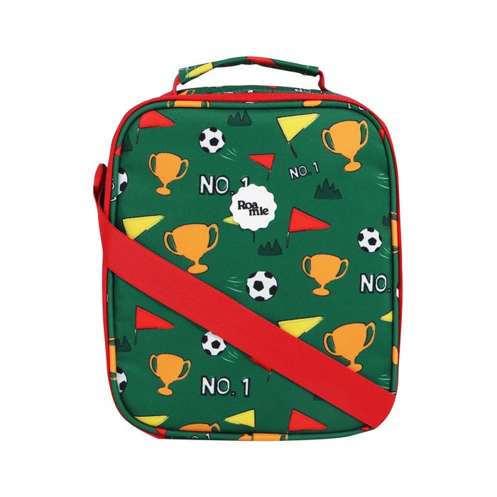 <p>Fuel their passion for the game with the Roamie Football Lunch Bag—the ultimate match-day and school-day essential! Designed with a bold football-inspired print, this insulated lunch bag keeps meals and snacks cool and fresh. Crafted from eco-friendly 100% recycled polyester, it includes reflective details for safety, an internal mesh pocket for snacks, a secure water bottle strap, and a name label to avoid lost items. Built to last, it features a DWR water-resistant coating and wipeable lining—perfect for little champions who never stop moving!</p>