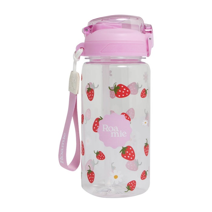 <p>Refresh their day with the Roamie Strawberry Water Bottle, designed for little explorers who love fun and fruity prints! Featuring a cute strawberry design, this BPA-free bottle is perfect for school, picnics, and days out. It comes with a satin carry strap for easy portability, a press-release lid with a secure silicone straw, and a lightweight feel that’s great for kids on the go. Hand wash only, this adorable bottle is built for everyday adventures!</p>