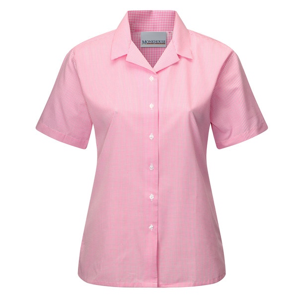 T/Pack S/S Rever Pink/White Check Blse-PIWH-C30