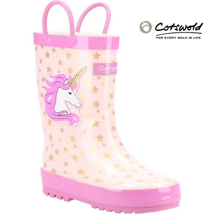 <p>Make rainy days magical with the Cotswold Puddle Unicorn wellies – the perfect kids’ waterproof boots for outdoor play, puddle-jumping, and school runs. Crafted from durable natural rubber, these unicorn wellies for girls and boys are fully waterproof to keep little feet dry in wet weather. Easy pull-on handles make them great for independent dressers, while the soft synthetic lining adds extra comfort for all-day wear. Finished with a fun, colourful unicorn design, these Cotswold wellington boots are a must-have for adventurous little ones who love to explore – rain or shine.</p>